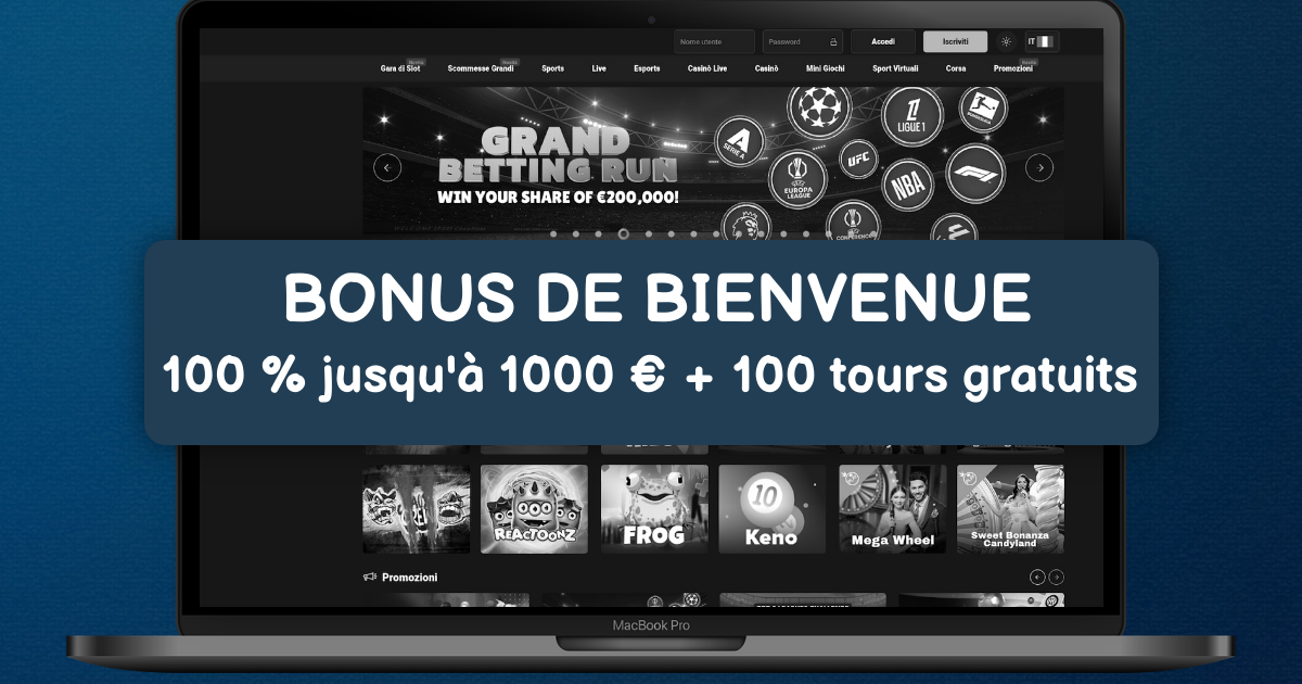 Premier dépôt : Bonus de 100% jusqu'à 2 000€ + 150 tours gratuits